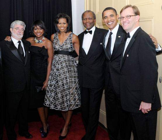 lady-friend Mellody Hobson, Michelle Obama, "Red Tails" cast-member