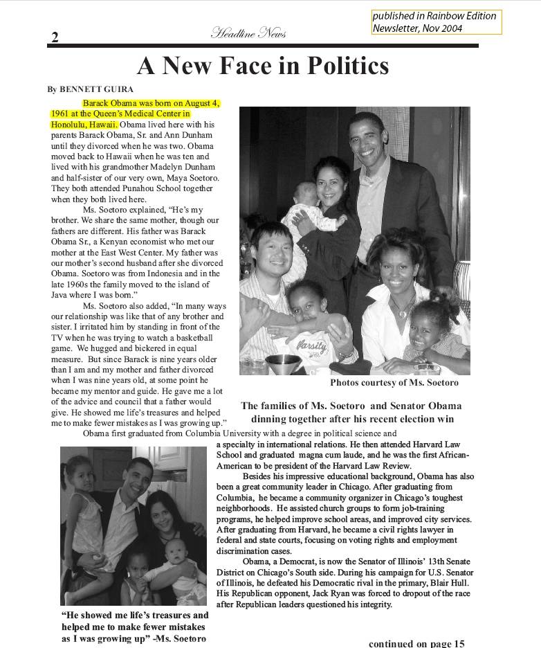 "Barack Hussein Obama was born at the Queen's Medical Center." Today,