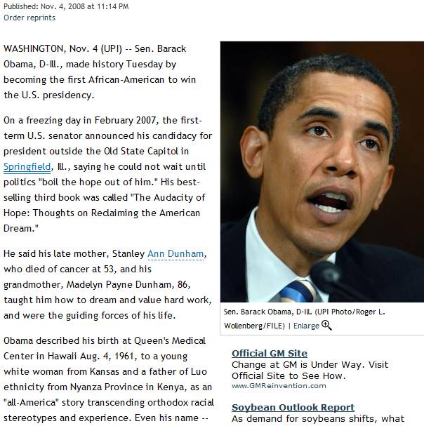 (UPI) and Snopes.com contained statements that Obama was born at the