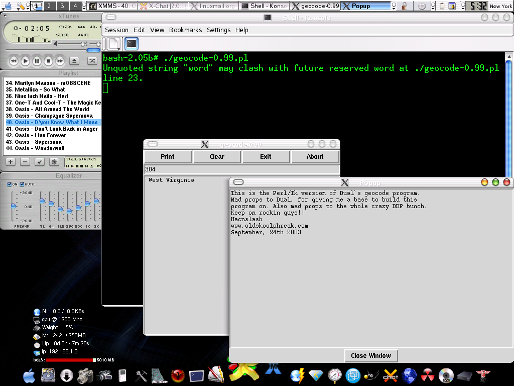 geocode-0.99.pl - Searchable area code database in Tk (screen shot)