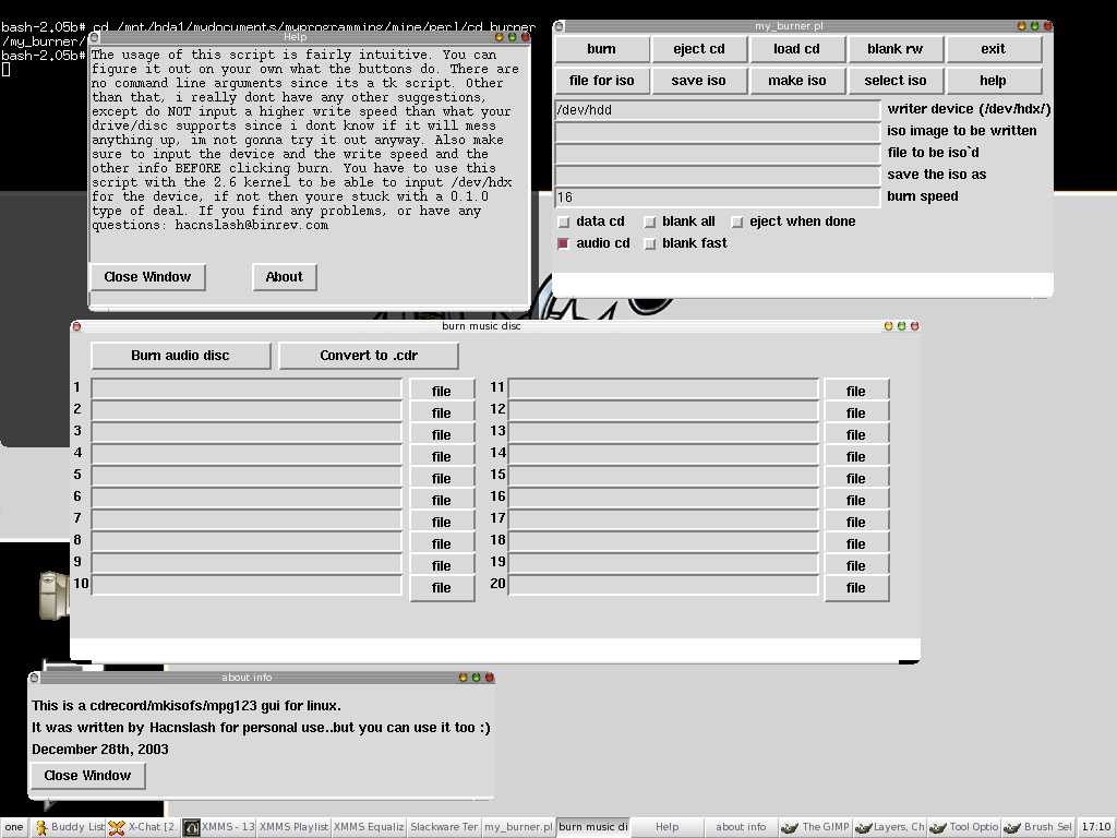Hacburn-0.1.5 - Tk tool for writing CDs (screen shot)
