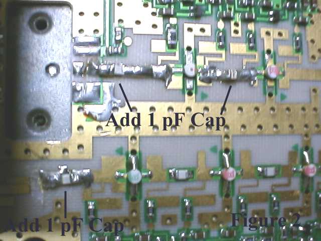 Add the three capacitors along with the additional microstrip pieces to modify as shown in Figure 2.