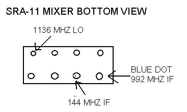 SRA-11 Mixer Pin DiagramThe conversion yields a reasonably high-performance transverter with a noise figure of about 1.5 dB and a power output of +8 dBm, frequency locked to a stable 10 MHz reference. Powered required is +12 VDC with a current consumption of about 0.5 amps in receive and 0.6 amps in transmit (about 1.5 amps total in transmit when including the 1 watt PA).