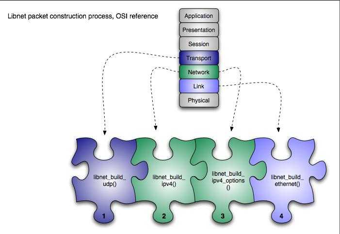 Libnet is a high-level API (toolkit) allowing the application programmer to construct and inject network packets. It provides a portable and simplified interface for low-level network packet shaping, handling and injection. Libnet hides much of the tedium of packet creation from the application programmer such as multiplexing, buffer management, arcane packet header information, byte-ordering, OS-dependent issues, and much more. Libnet features portable packet creation interfaces at both the IP-layer and link-layer, as well as a host of supplementary and complementary functionality. Using libnet, quick and simple packet assembly applications can be whipped up with little effort. With a bit more time, more complex programs can be written (Traceroute and Ping were easily rewritten using libnet and libpcap).