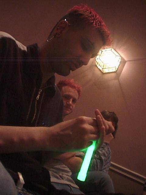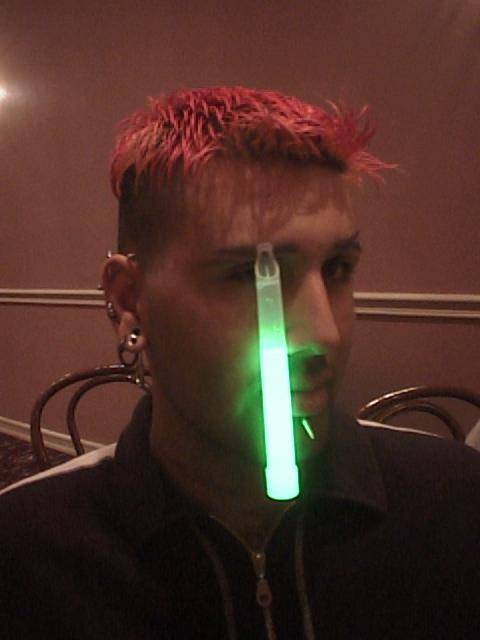 Glowstick hanging from Nirva's eyebrow piercing