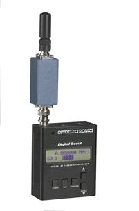 All of our Optoelectronics nearfield devices look for a signal that is 15 dB above the background RF floor. Once it detects that dominant signal it stops and locks on that signal and displays the frequency.
