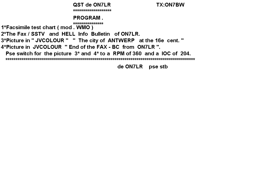 The FAX/SSTV and HELL - INFO BULLETIN of ON7LR