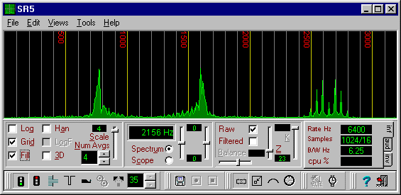 SR5 combines these functions in a modern, easy to use 32-bit multi-tasking application which you can run alongside other radio software. SR5 has been designed to provide a comfortable spectral display AND to provide real-time audio filtering, without hogging the CPU and therefore allowing you to use other radio software at the same time.