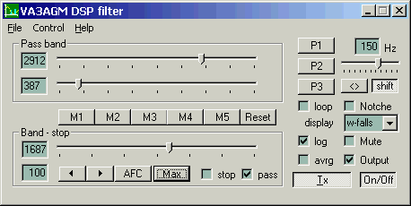 • The program takes the input from a audio source. In Rx mode it can be the Line-In of the sound card. The input signal can be filtered using a Low Pass, High Pass or Stop band programmable DSP filter. The processed input is fed to the PC's speaker. The unprocessed or processed signal can be displayed in the Spectrum Display window.