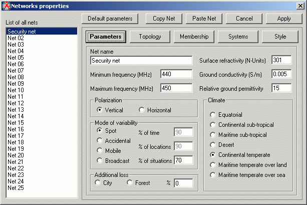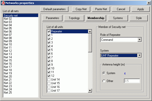 Proper parameters are set in order to form a UHF radio net where a repeater will be used.