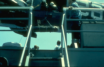 by helicopter