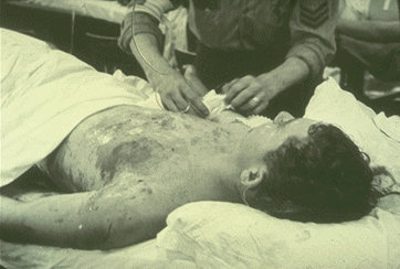 Wounded man in battle dressing station