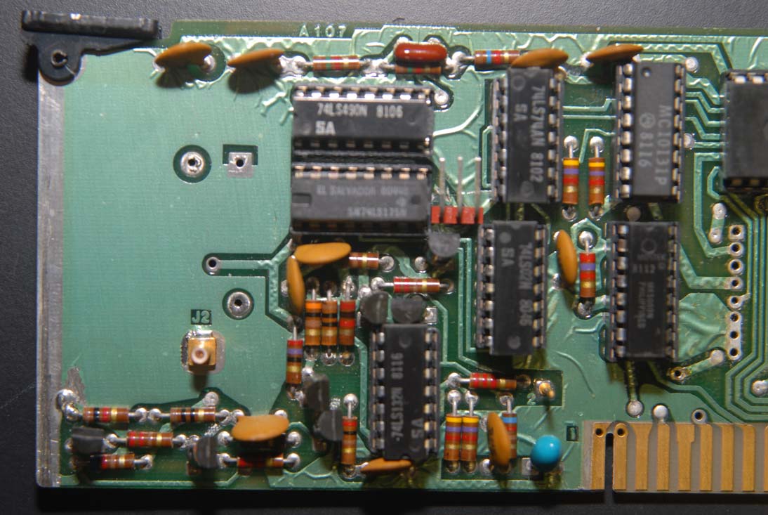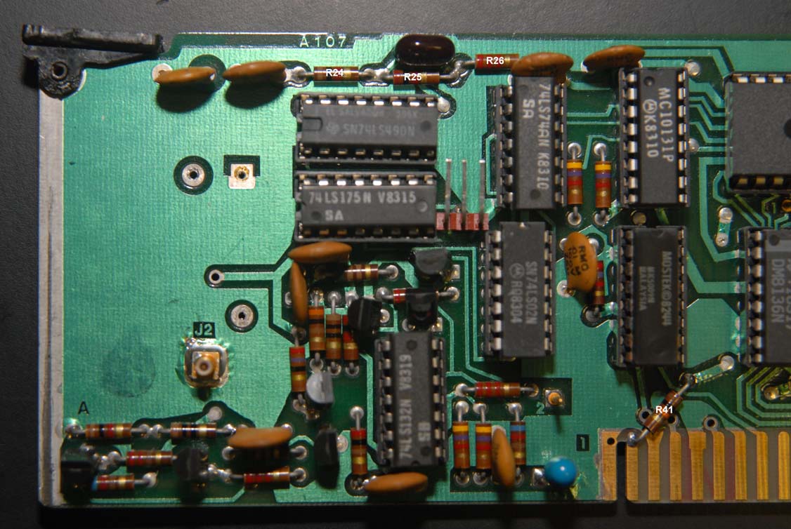 The picture above shows the EPROM (U20) along with additional ICs, a 74LS244N (U19) and a DM8136N (U21), along with an additional 10k resistor (R41).