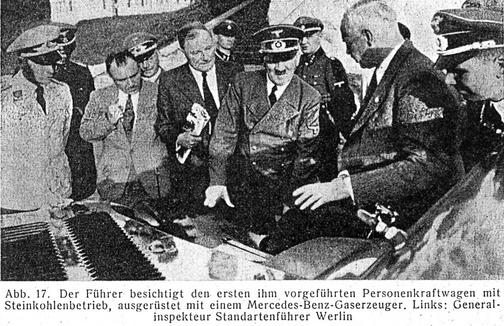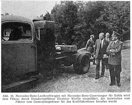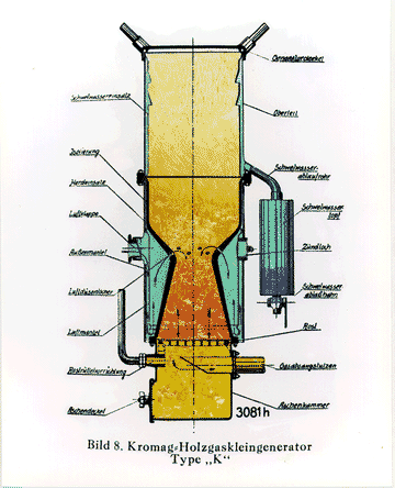 One of the more notable features of all producer gas generators, just as shown here, is the typical "blower" (Gebläse, Anfachgebläse in German).