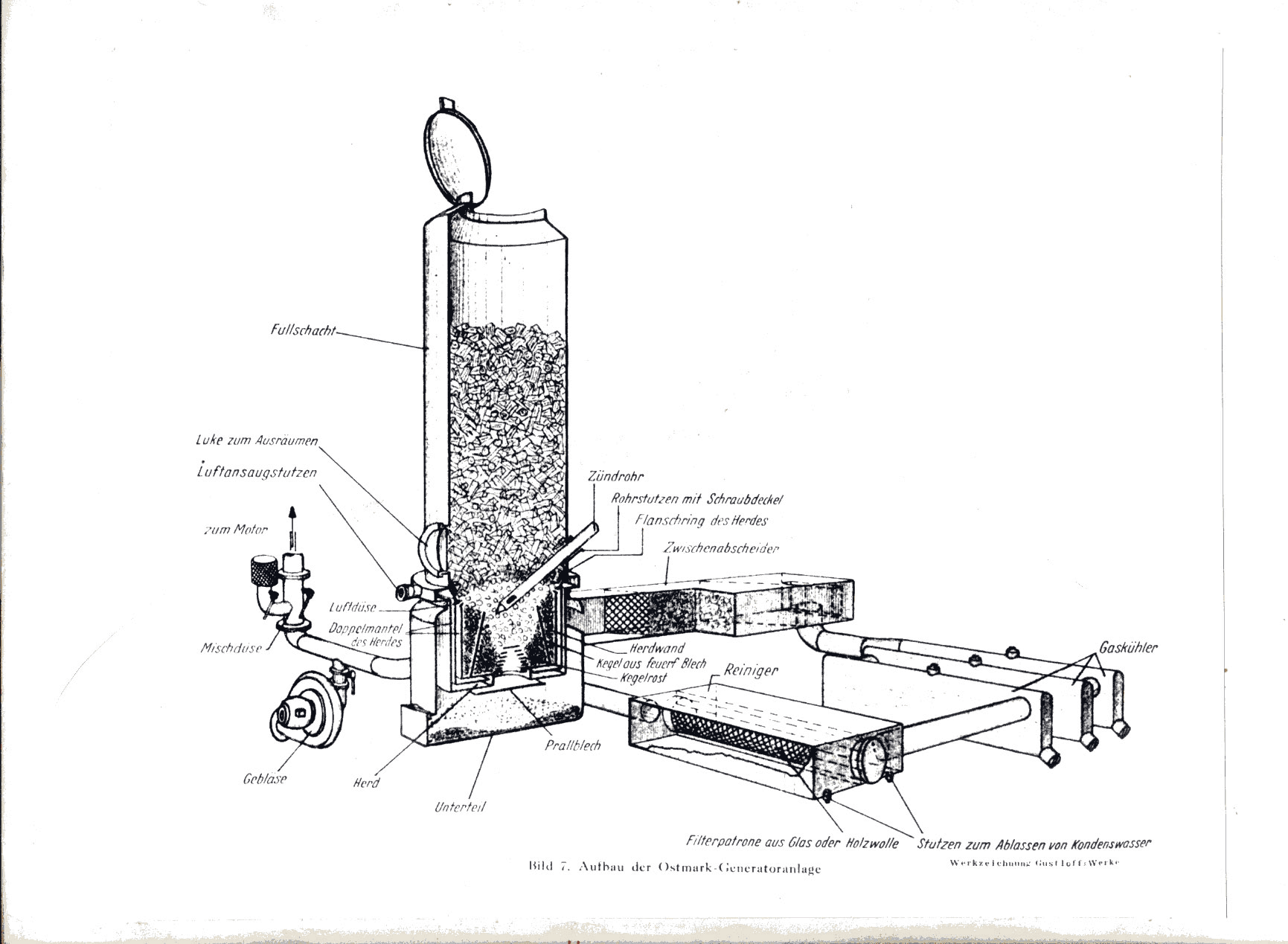 Already the first two sentences of these "safety guidelines" tell every driver the two most important facts they should know if they wish to commit mass murder. Producer gas is poison gas! All producer gas vehicles were, in effect, self-propelled gas generators. The fuel itself was poison gas. Wherever possible, liquid fuels had to be reserved for the military, at least for the duration of the war. The interest which even Adolf Hitler showed is demonstrated by his remarks at an exhibition of Mercedes-Benz heavy trucks with Mercedes-Benz gas producers that burned coal:[86] "Vehicles of this kind will retain their special significance after the war as well; for given the trend towards increasing motorization, we will never have a surplus of liquid fuel and will always be dependent on imports. The additional domestic fuels thus benefit our own national economy." By the autumn of 1941, some 150,000 producer gas vehicles were already in use in Germany and the areas controlled by her. The conversion of existing trucks to producer gas resulted in a monthly savings of about 45 million liters of liquid fuel. The goal was "to free every bit of dispensable fuel for the Wehrmacht."[87] By the end of the war, more than 500,000 producer gas vehicles had been put into service by the Germans.[88] On May 30, 1942, Reichsmarschall Göring established a "Generator Central Office" for his Four-Year Plan:[89] "to boost generator production, to determine new types on the basis of the fuel situation at hand, to develop new solid fuels for use in the generator, and to develop suitable processes for preparation and low-temperature carbonization etc." Göring stated:[90] "I refer to the explanations in my aforementioned decree, regarding the urgency of making Germany as well as the occupied territories and dependent lands largely independent of liquid fuel as quickly as possible, and would ask you to vigorously support the efforts of the Central Office through the increased use of generators." As the war continued, conversion to solid fuel became more and more urgent. On September 22, 1942, Reich Minister Speer, acting in his capacity as plenipotentiary for armament production (GBRüst), ordered the conversion of all medium and heavy vehicles including buses in all German-occupied regions.[92] A year later, the GBRüst's amendment of September 13, 1943, eliminated all exemptions. Now the conversion of all civilian vehicles was mandatory as well, including even the smallest automobiles.[93] After the war, in a long report about German oil production, the U.S. Strategic Bombing Survey stated that even some of the best German tanks, 50 Königstiger, had been driven with producer gas just before the war's end.[94]