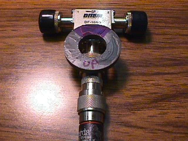 To reduce power amplifier intermodulation distortion and to protect the amplifier in case of high SWR, you should use an isolator. This is a surplus cellular phone isolator from Down East Microwave, #SE031. The magnet helps to "move it up" to the 900 MHz band. You'll need to sweep it with a signal generator and a diode detector, while moving the magnet around, to tune it. Glue the magnet in place when you're done. The 5 watt, 50 ohm load is also avaiable from Down East Microwave, #SC170. You'll need a N lesbian (N female to N female connector) to connect it to the isolator.