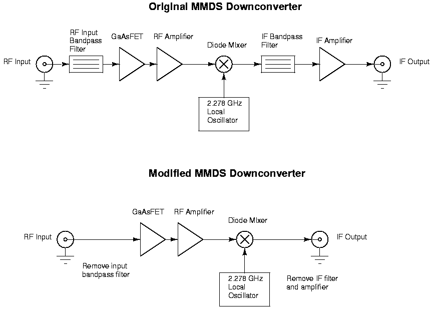 It's even possible to downconvert a 2.4 GHz signal down to VHF frequencies using a slightly modified MMDS downconvter. This will allow you to view 2.4 GHz signals with this analyzer.