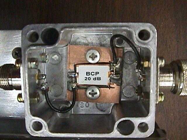 Here is a simple, easy and cheap way to make fairly high power RF attenuators. These are useful for directly connecting the output of a high power RF amplifier into a spectrum analyzer, frequency counter or other piece of test equipment (additional attenuation maybe required!). The circuit is based around a Bird Component Products attenuator chip, which are available from Radio Dan for $30 a piece. When properly heatsinked, they will dissipate a continous 150 Watts of power.