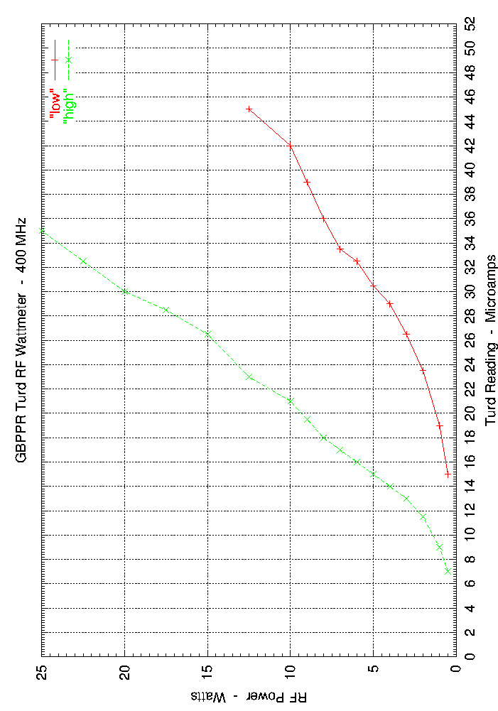 Response calibrated against a Bird 43 with 400-1000 MHz / 25 W element