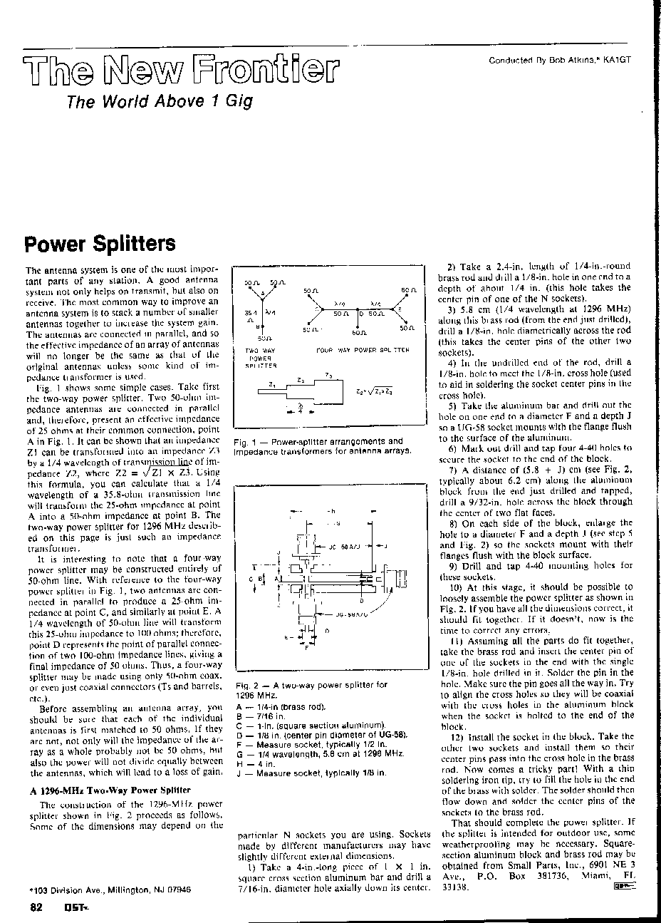 This section will list several projects which will allow you to build your own RF design test equipment. Microwave construction techniques and basic electronic skills will be required on some projects, but the tools you can make will equal what the so-called "professionals" use.