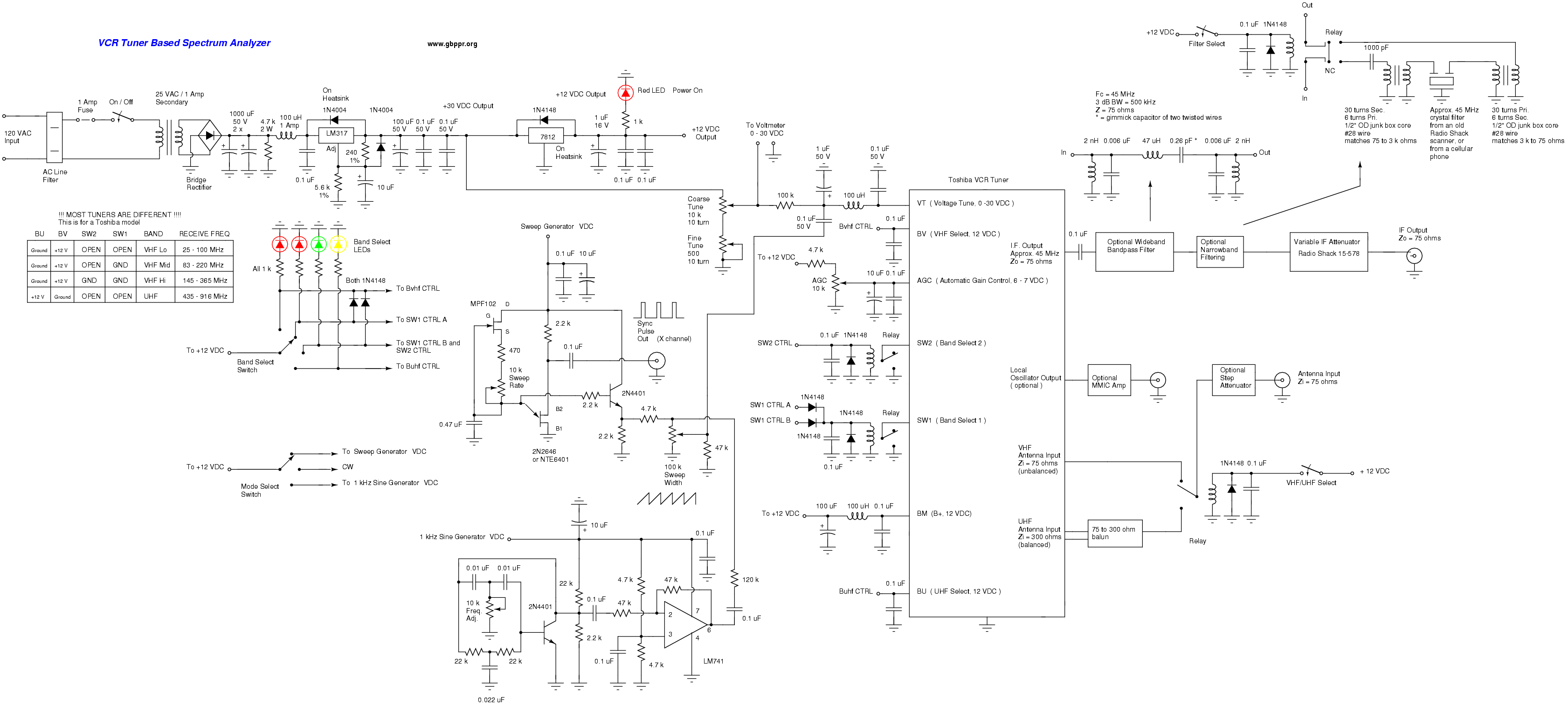 - VCR Tuner Based RF Spectrum Analyzer Schematic