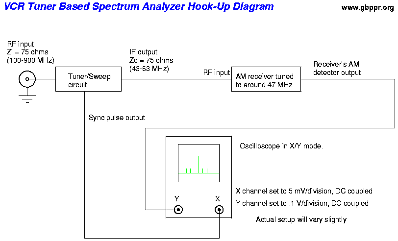 My Toshiba VCR tuner oscillator/tuning plots- VCR Tuner Based RF Spectrum Analyzer Hook-Up Diagram