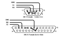 Figure 8. This solder side view shows how to wire the DB-9 (female) or DB-25 (female)