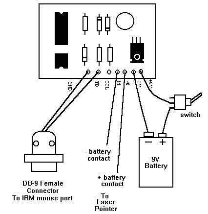 To test the circuit, plug the DB-9 connector into the mouse port on your PC. Turn on
