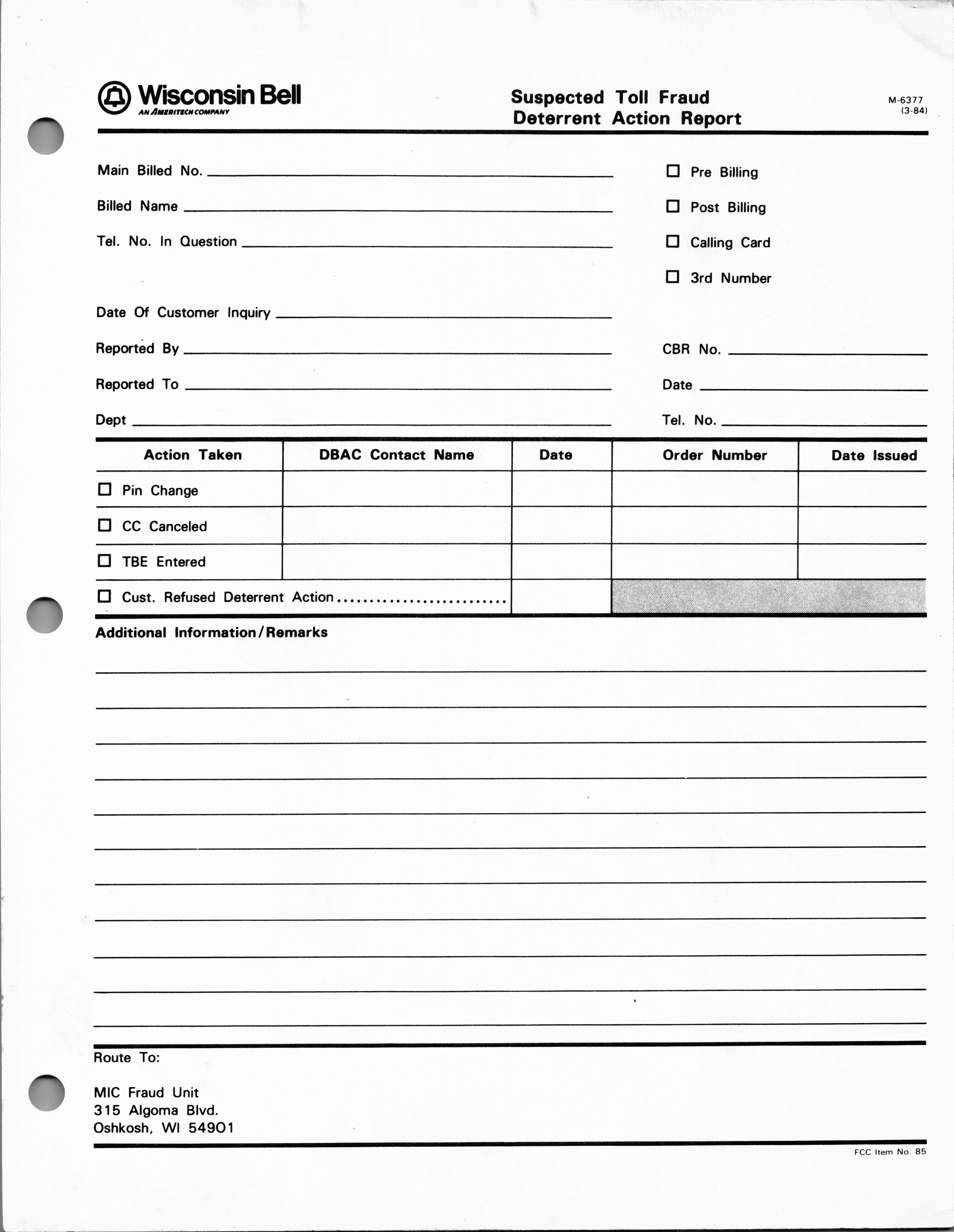 - Ameritech Security Bulletin, ESS/AMA Dial-Up Numbers